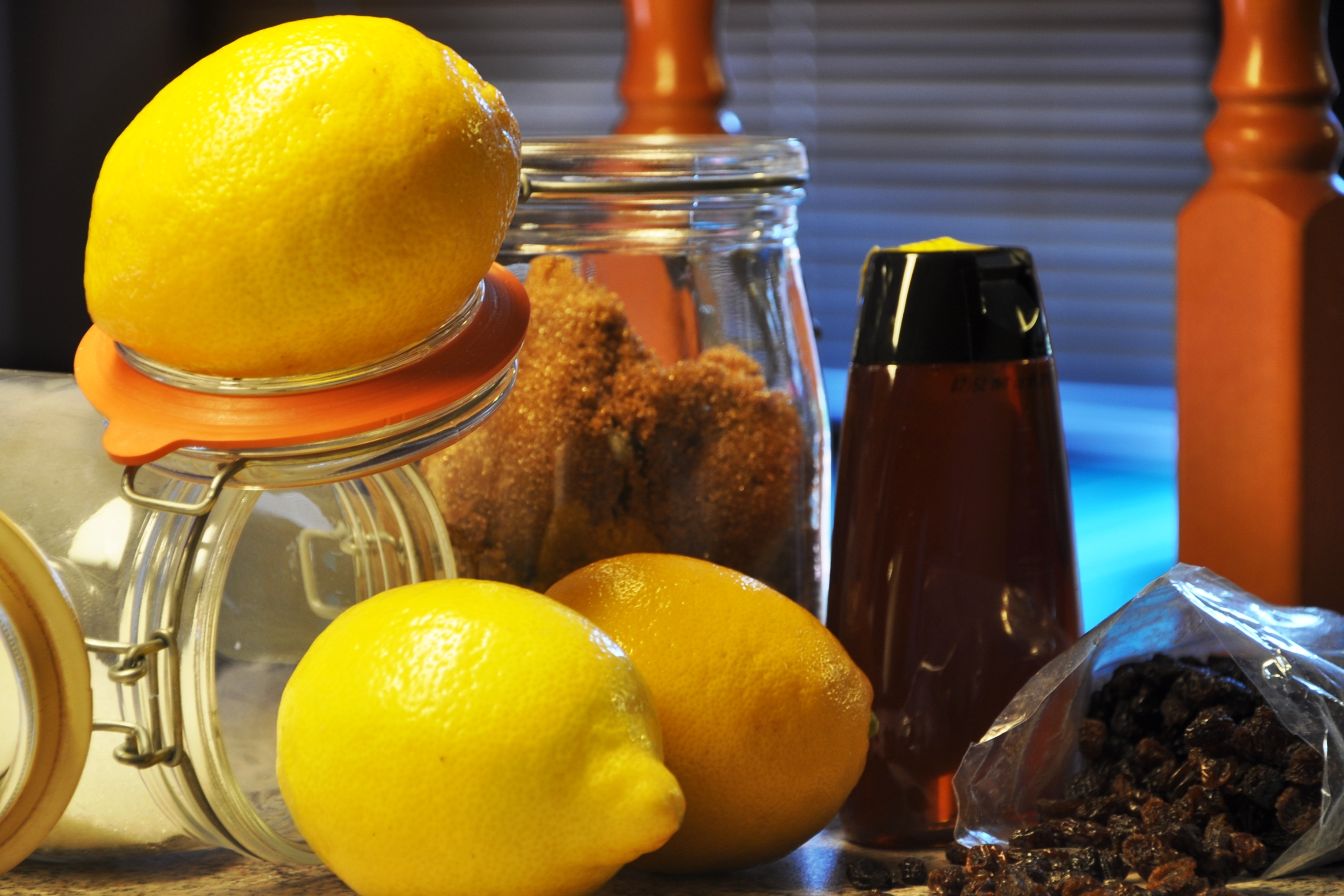 - Kuumenna vesi kiehuvaksi. Lisää sokerit ja hunaja, sitruunankuorisuikaleet, sitruunaviipaleet ja inkivääriviipaleet joukkoon ja anna nesteen jäähtyä haaleaksi.