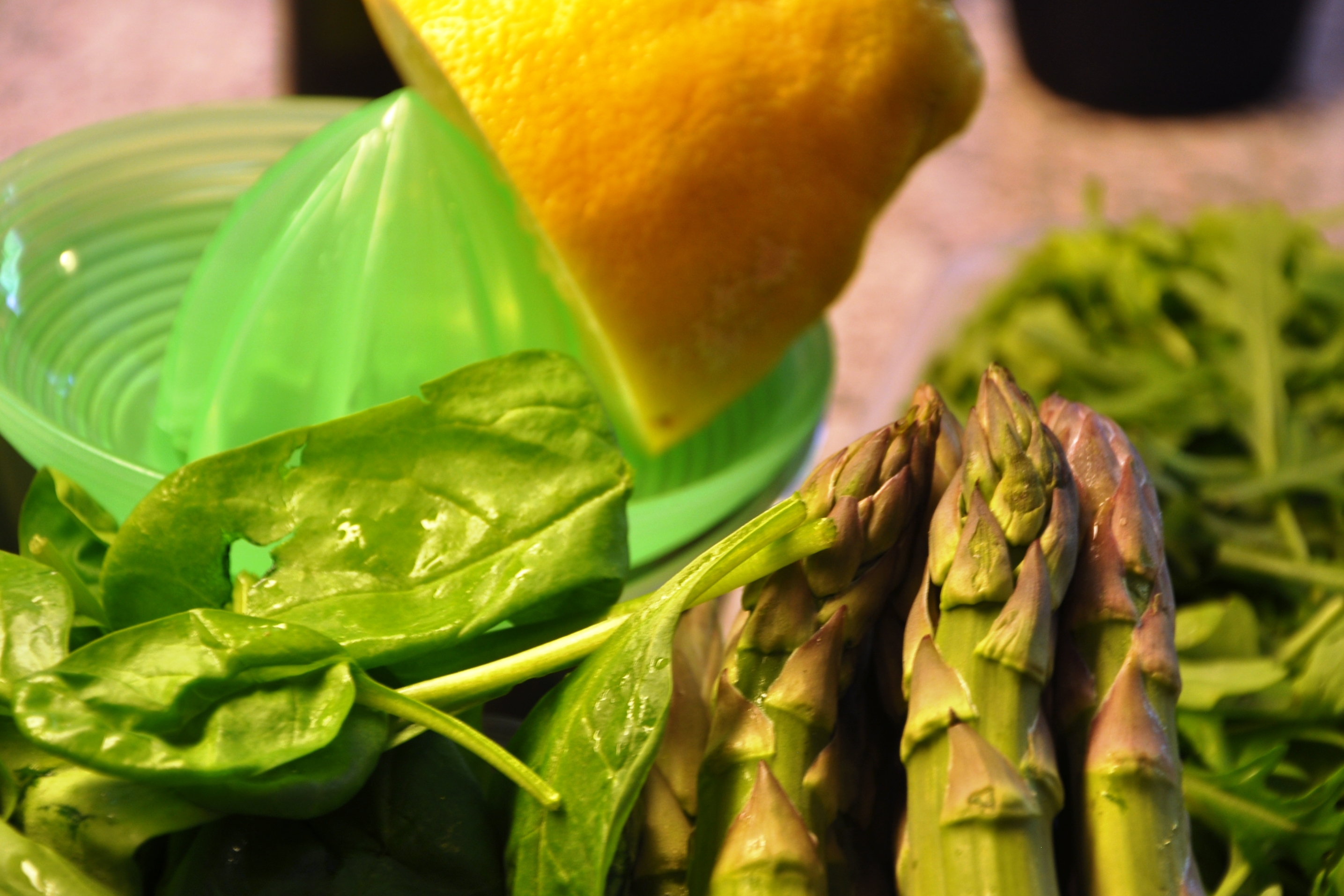 Reseptin puutteista huolimatta sain pastan tehtyä. Olin läntännyt huuhdotut rucolat ja pinaatit samalle lautaselle odottamaan pannulle menoa, joten heitin rucolat yhtä aikaa pinaatin kanssa sekaan. Huono idea, sillä sinappikaalin maku hävisi pastasta lähes kokonaan. Rucola kannattaa siis sekoittaa viimeisenä. Pinaattia olisi saanut mielestäni olla enemmän, ainakin jos tekee kuten minä eli annoin sen hetken paistua sipulien (ja rucolan) kanssa pannulla ennen kuin lisäsin parsat ja tagliatellen. Sitruunamehu puolestaan maistui aika vienosti, joten sitä ehkä saisi olla ronskimmin.