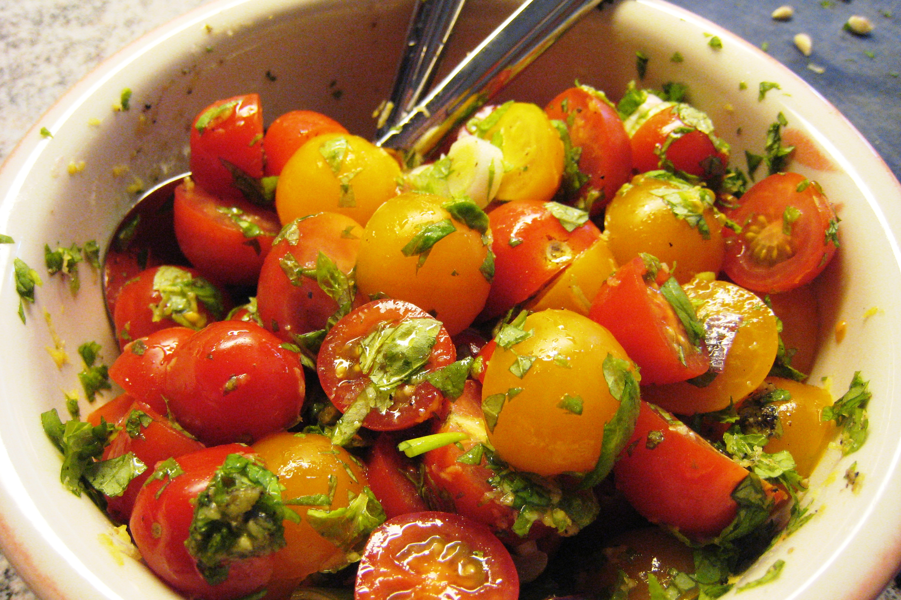 Purista annoksen päälle sitruunamehua. Koristele pinjansiemenillä sekä parmesaanista höylätyillä lastuilla.