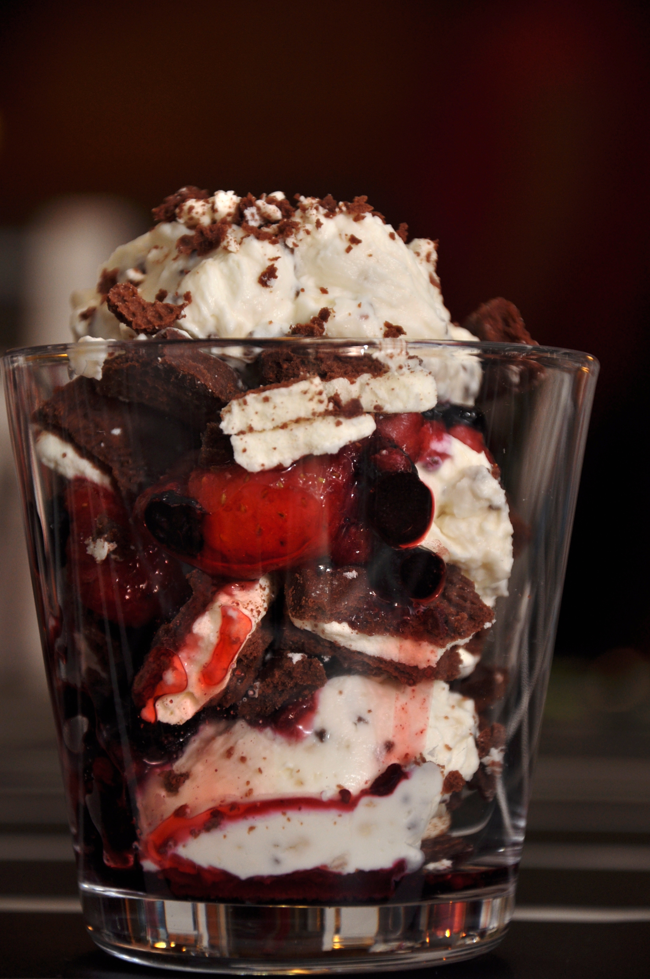 Ehkä hiven itsestäänselvää, mutta pakastemarjoista kannattaa valuttaa ylimääräiset nesteet pois ennen kokoonpanoa. Trifle-maljoja ei kannata myöskään seisottaa jääkaapissa liian kauan, ettei kekseistä tule vetisiä, sillä se olisi ikävää.