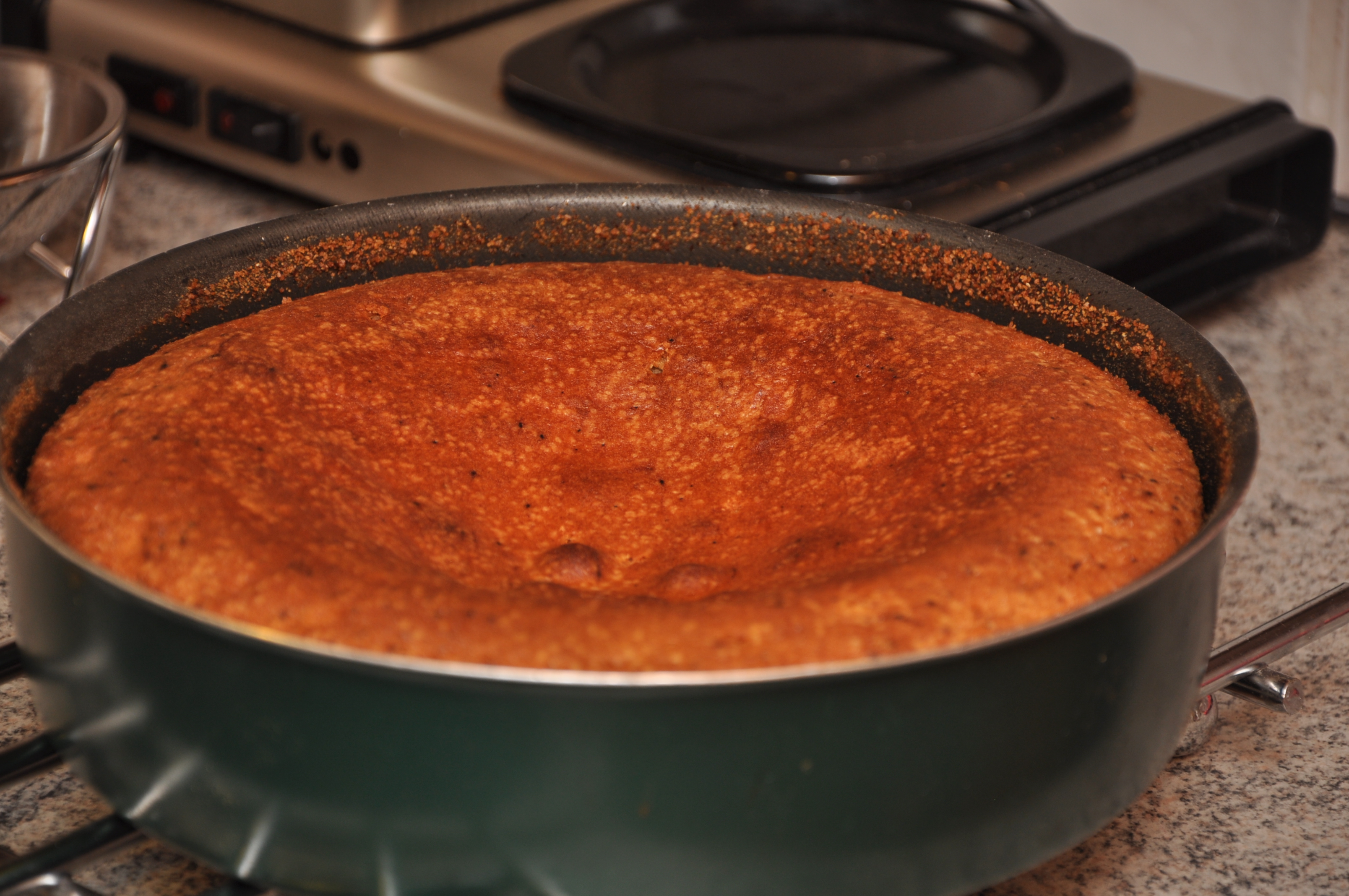 Päädyin siis tekemään toisen pohjan ohjeen mukaisesti. Se sitten lässähti keskeltä, mutta onneksi se ei haittaa, kun keskeltä leikataan joka tapauksessa osa pois. Lisäksi pohjasta numero kaksikaan ei tullut niin paksua, että siitä leikkaisi neljää kerrosta.
