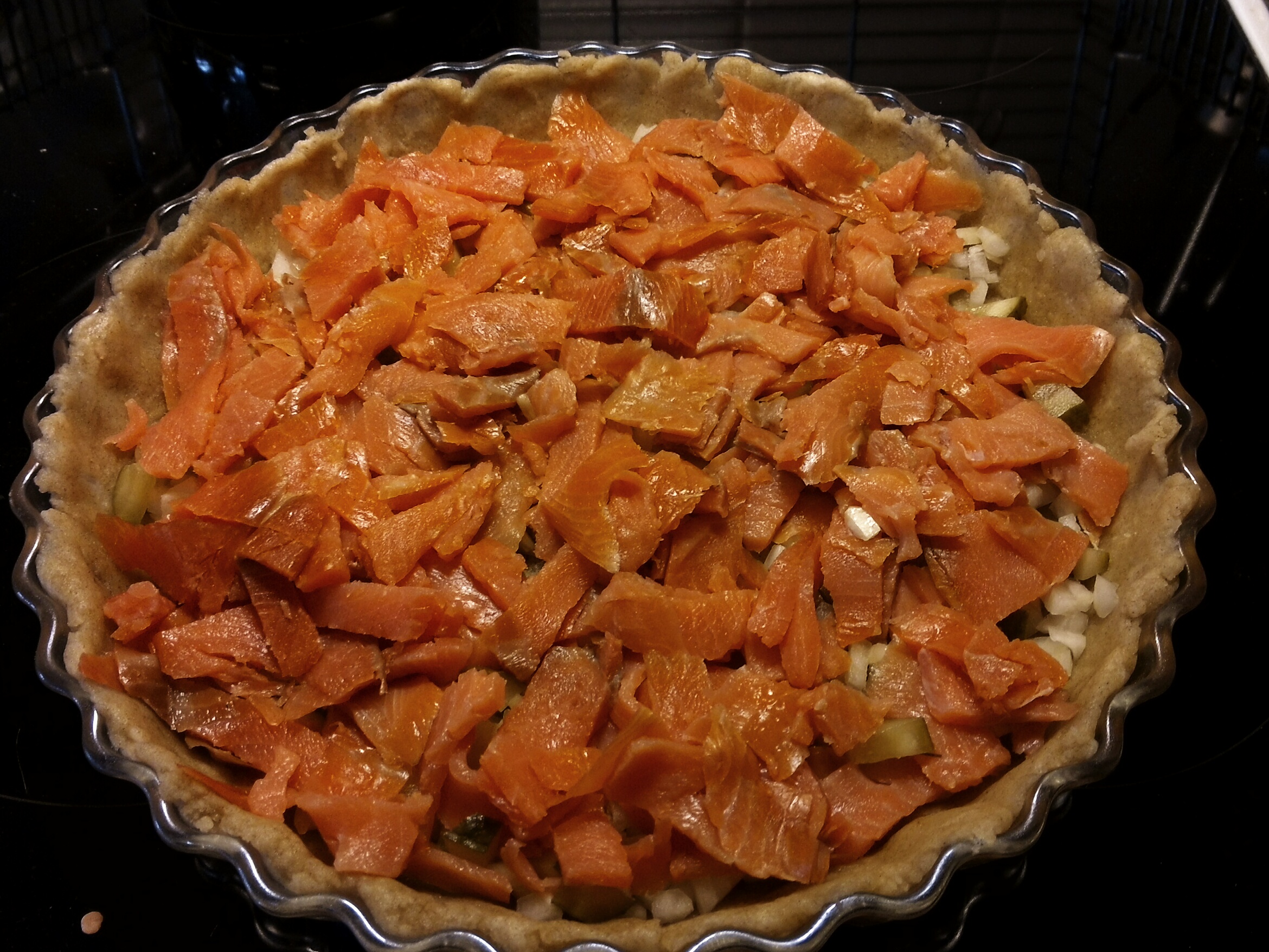 Vähän pelkäsinkin, että täytteitä on niin paljon, että muna-kermaseos valuu taikinareunuksen yli.
