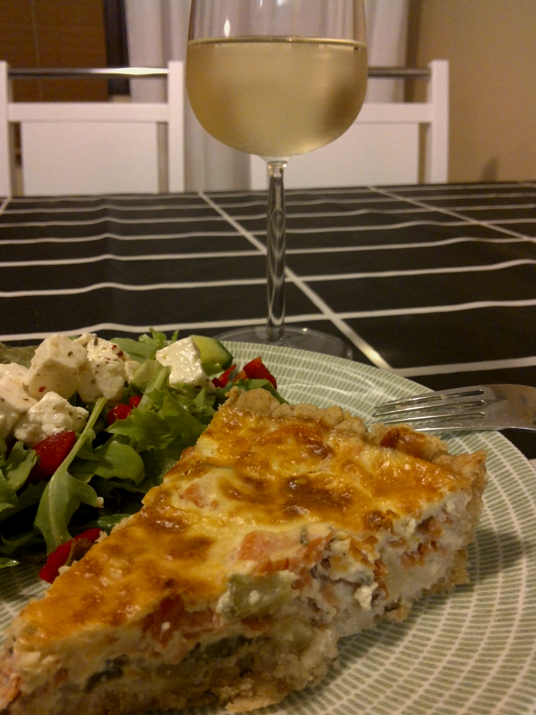 Istuimme helatorstain aikoihin iltaa kavereiden kanssa, sillä oli uuden vuoden lupaukseeni kuuluvien toukokuun treffiemme aika. Helsingin Sanomien parsa-juustopiirakasta innostuneena lupauduin leipaisemaan sellaisen meille iltapalaksi. Ohje on julkaistu painetussa lehdessä 28.4.2016 ja löytyy täältäkin.