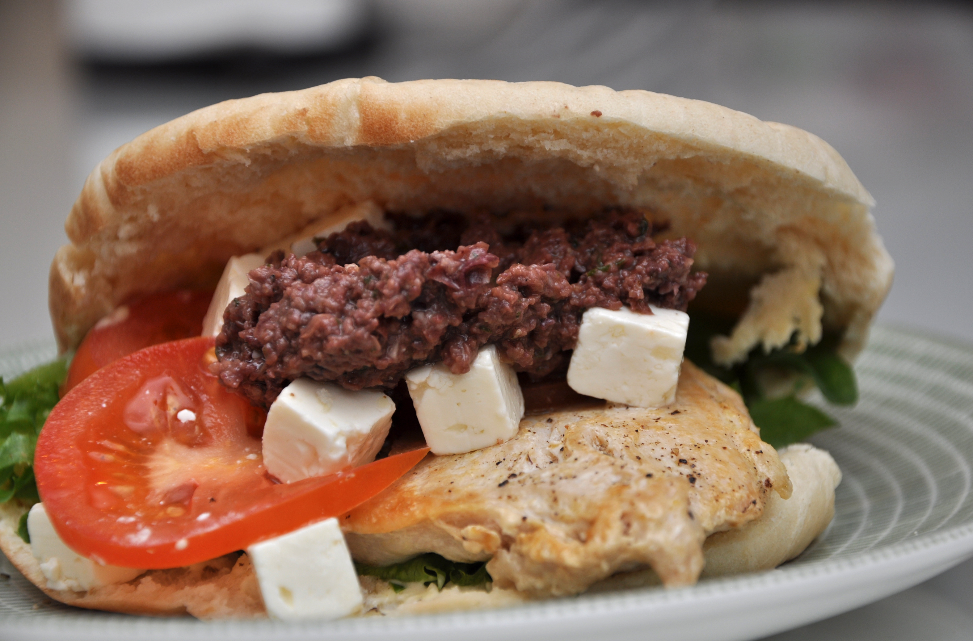 Molemmilla kerroilla tätä syötiin kana-pitaleipien kanssa, leipien välissä oli kananpojan minuuttipihvejä, oliivitahnaa, tomaatteja (hih), salaattia, fetaa ja majoneesia. Ja aion todellakin tehdä tätä tulevaisuudessakin, ja tuskin vieläkään laitan tomaattia sekaan.